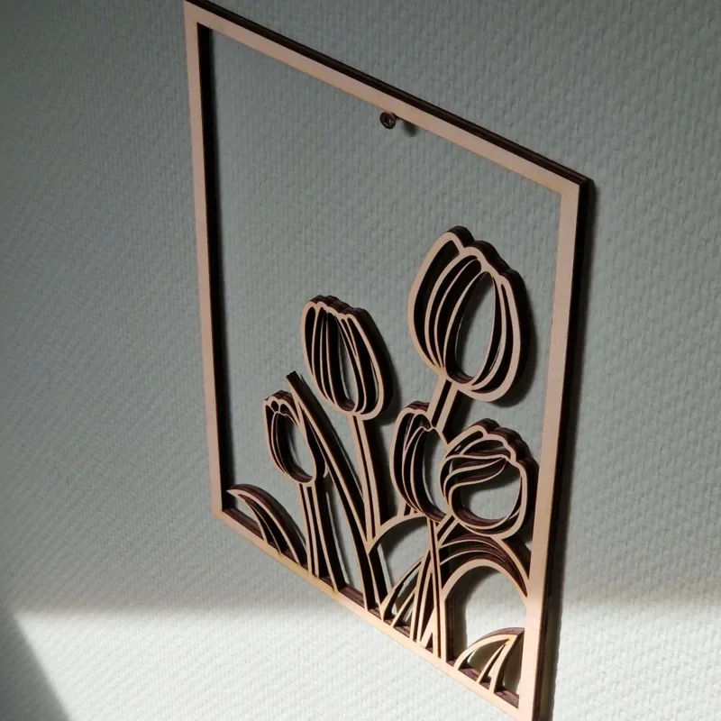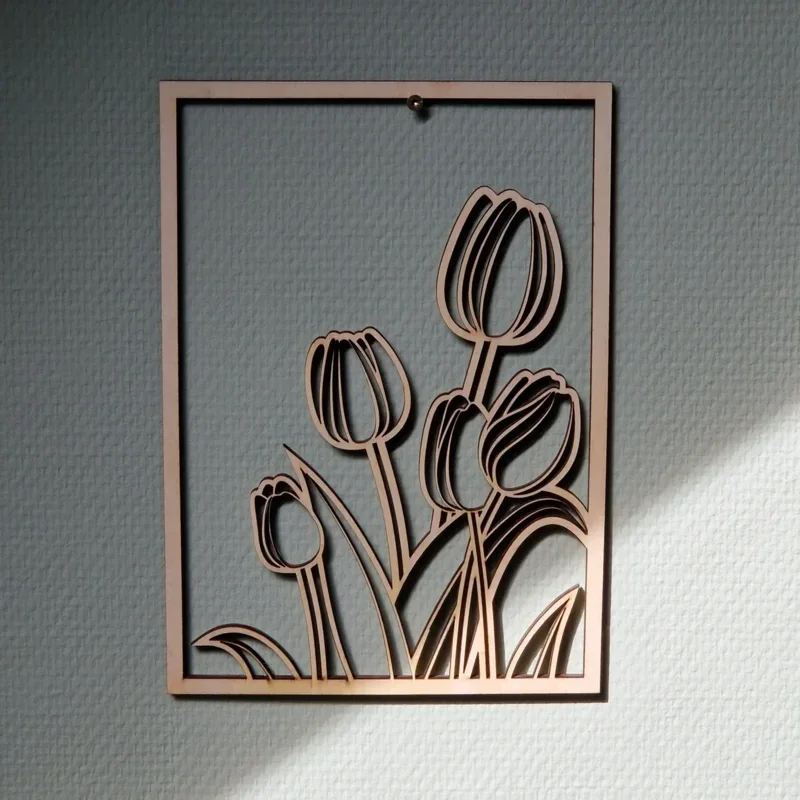 De wanddecoratie wordt gemaakt van 6 mm populier en is verkrijgbaar in onbehandeld hout of zwart geverfd