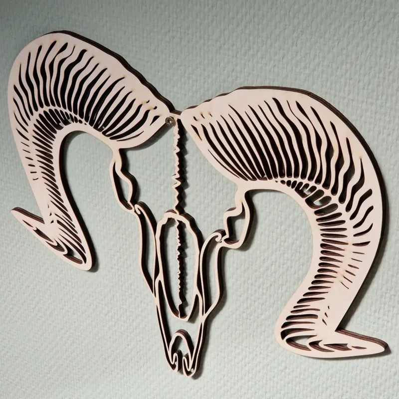 Deze houten schedel van een ram is een echte eyecatcher voor elke kamer!