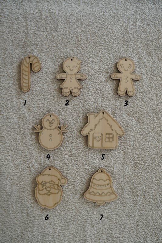 De kersthangers zijn 8 cm lang en hebben verschillende breedtes