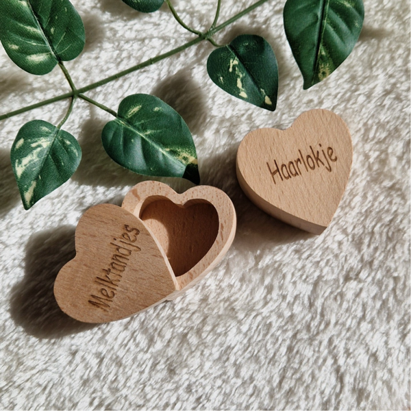 Een leuk schattig houten doosje om je eerste haarlok of melktanden in te bewaren