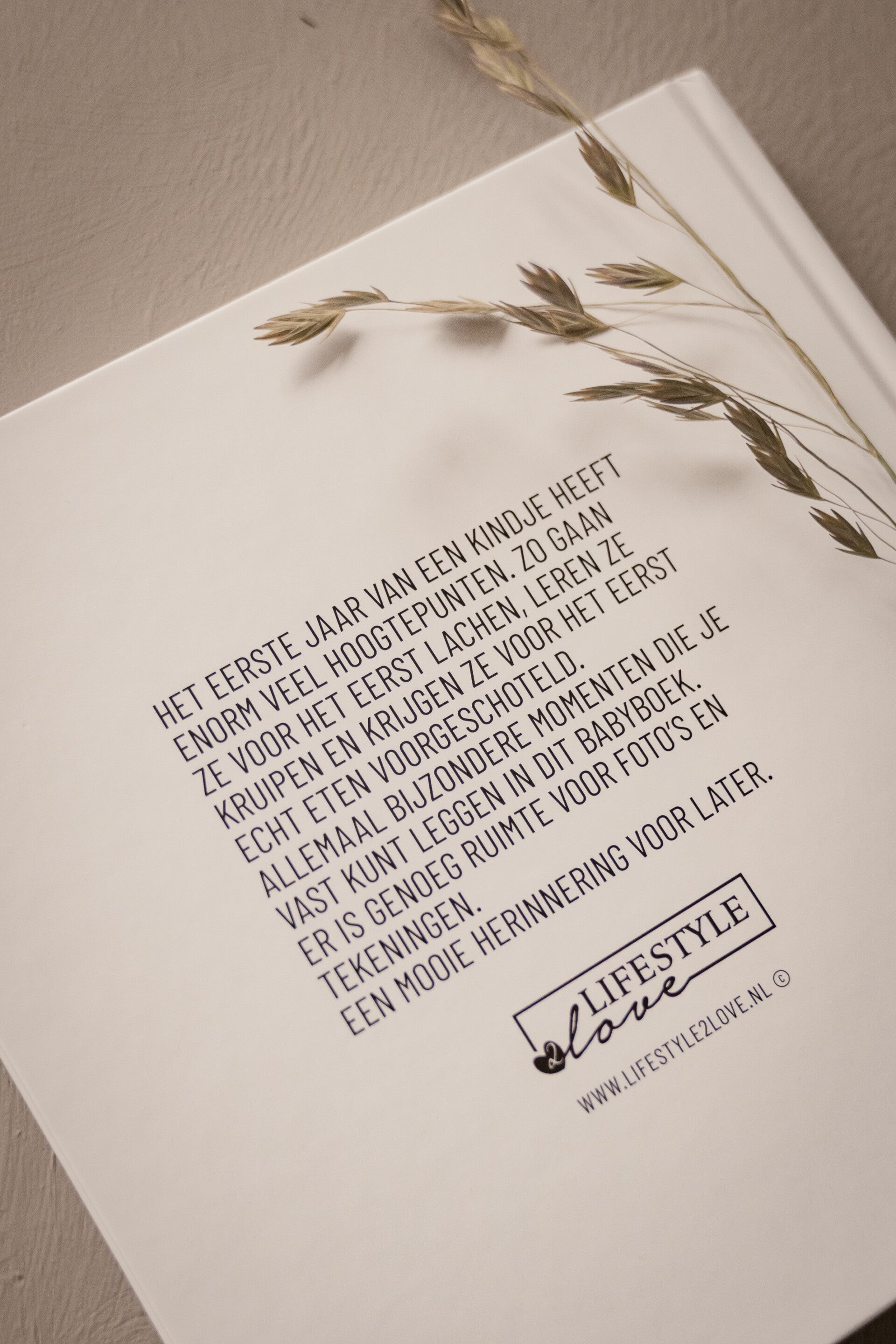 Het eerste jaar van een kindje heeft enorm veel hoogtepunten. Zo gaan ze voor het eerst lachen, leren ze kruipen en krijgen ze een eigen karakter. Allemaal bijzondere momenten die je vast kunt leggen in dit Babyboek van Lifestyle2Love. Er is genoeg ruimte voor foto’s en tekeningen. Een mooie herinnering voor later.