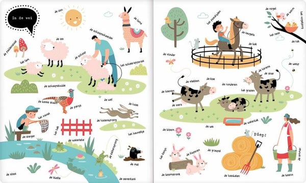 Kom je weleens op de boerderij? Kijk de volgende keer eens goed om je heen. Wat zie je allemaal? Op de laatste pagina staat een leuke zoek-en-vindopdracht!